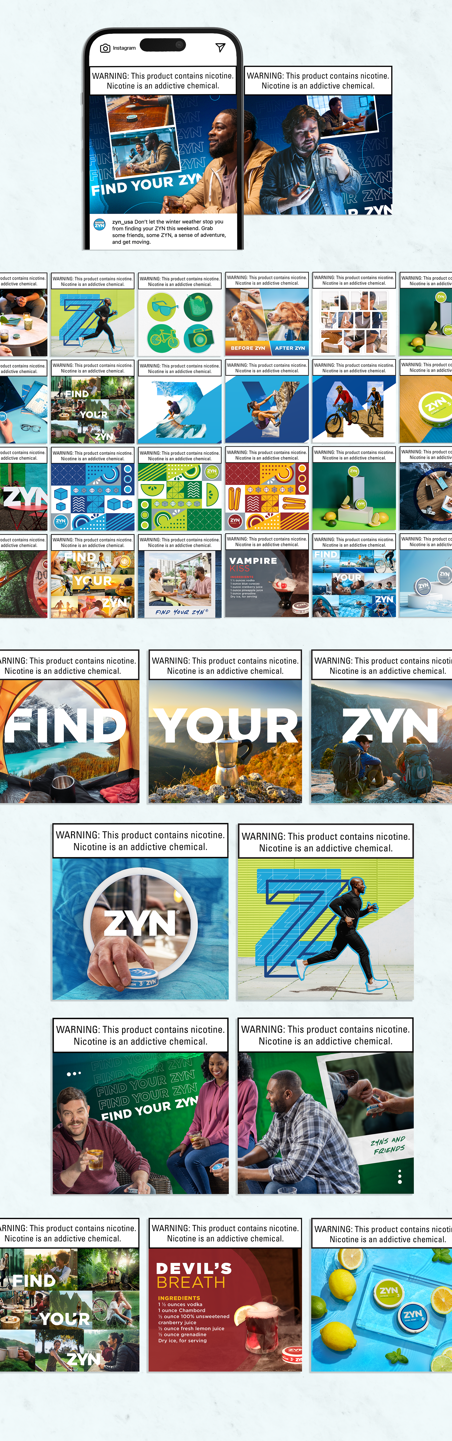 Created bold, lifestyle-driven content that helped grow ZYN's Instagram from launch in 2021 to 40.2K followers, building an engaged adult audience and strong brand presence.